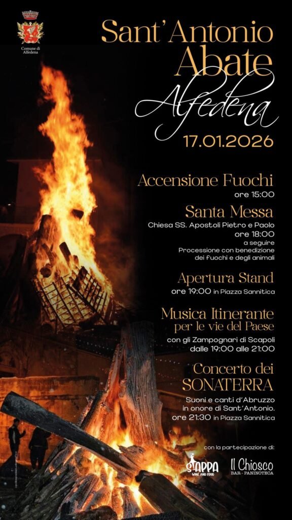 The Feast of Sant’Antonio Abate in Alfedena is a cherished annual celebration draws many locals and visitors. The event begins with a mass and continues with a big bonfire, blessing of domestic animals and traditional music. For more details see the municipality’s page.